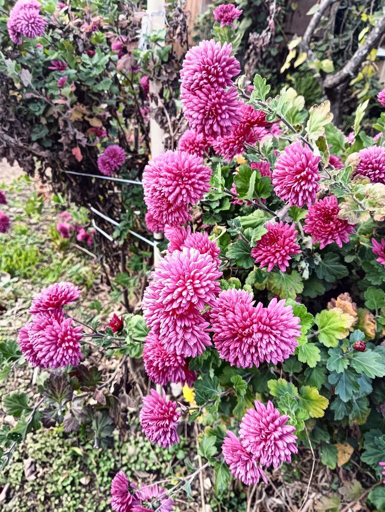 無住と思しきお宅の庭先に 菊が満開