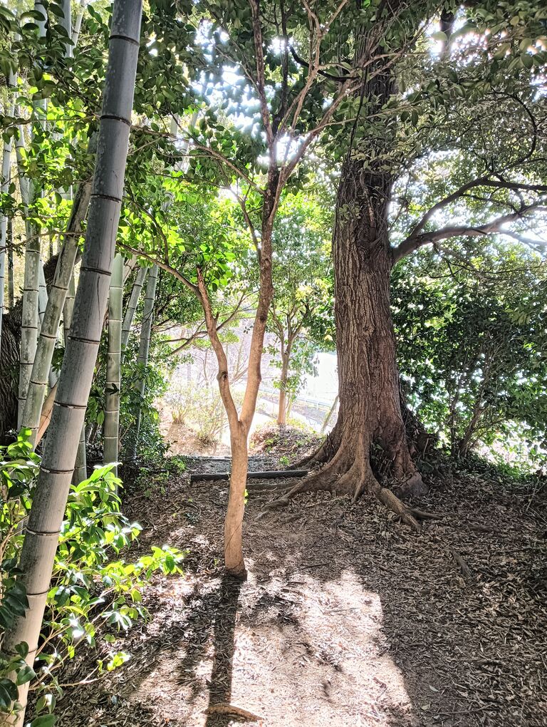 先ごろから試している「なんば(難場)歩き」のせいか 結構の階段・急坂を歩いてきたのに まだ歩けそうなので 熊野神社の奥山に登り ぐるっと回り込んで 参詣してみよう