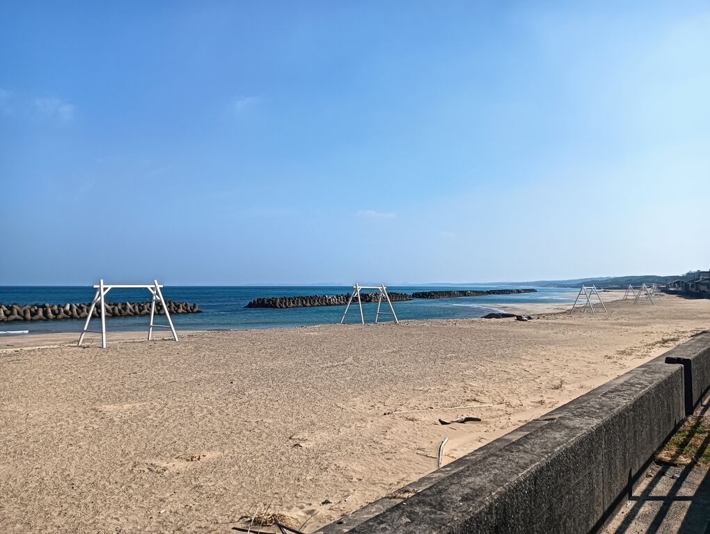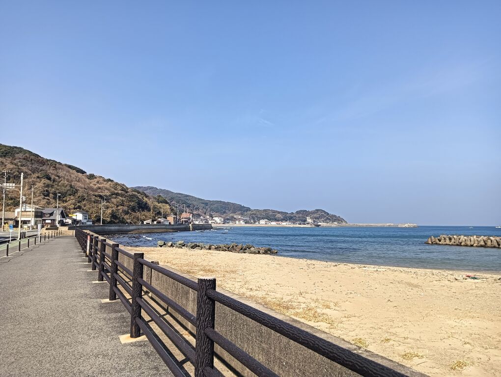 波津海岸休憩スポットから 浜を眺めると
