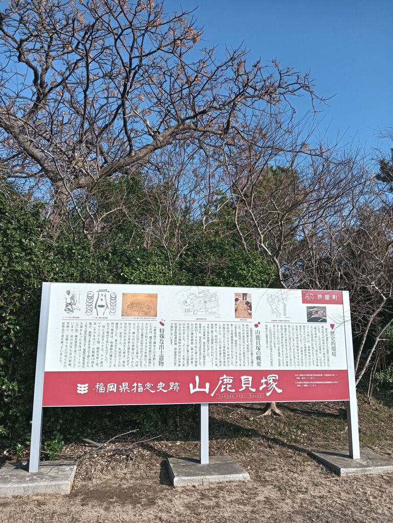 いつも遠目に眺めてはいた 山鹿貝塚の案内板があった